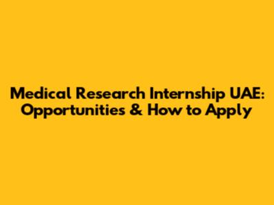 Medical Research Internship UAE: Opportunities & How To Apply
