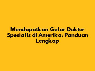 Mendapatkan Gelar Dokter Spesialis Di Amerika: Panduan Lengkap