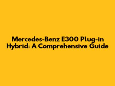 Mercedes-Benz E300 Plug-in Hybrid: A Comprehensive Guide