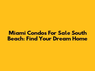 Miami Condos For Sale South Beach: Find Your Dream Home