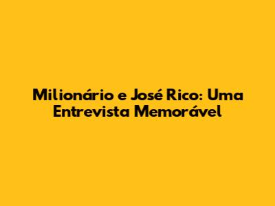Milionário E José Rico: Uma Entrevista Memorável