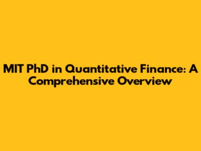 MIT PhD In Quantitative Finance: A Comprehensive Overview