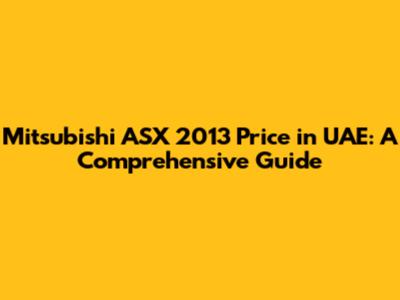 Mitsubishi ASX 2013 Price In UAE: A Comprehensive Guide