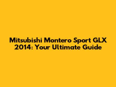 Mitsubishi Montero Sport GLX 2014: Your Ultimate Guide