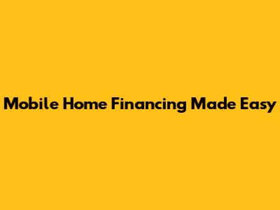 Mobile Home Financing Made Easy