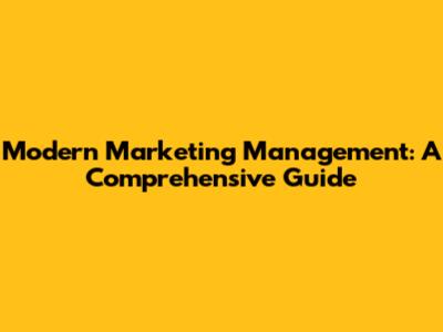 Modern Marketing Management: A Comprehensive Guide