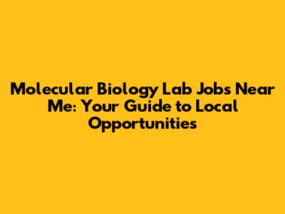 Molecular Biology Lab Jobs: Find Opportunities Near You
