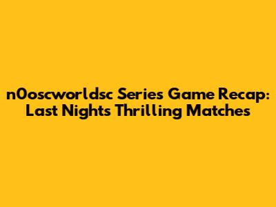 N0oscworldsc Series Game Recap: Last Night's Thrilling Matches