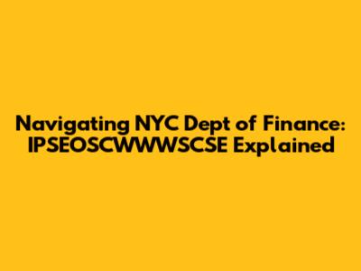 Ever stumbled upon a mysterious code while dealing with the New York City Department of Finance and wondered what it meant? Well, you're not alone! Let's demystify one of those codes: IPSEOSCWWWSCSE, often encountered when dealing with property taxes, payments, or other financial transactions with the city. This guide will break down what this code likely refers to, why it's important, and how to navigate the NYC Department of Finance effectively. Understanding these codes can save you time, reduce confusion, and ensure you're managing your financial obligations to the city correctly. Let's dive in!