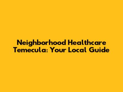 Neighborhood Healthcare Temecula: Your Local Guide