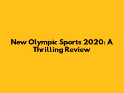 New Olympic Sports 2020: A Thrilling Review