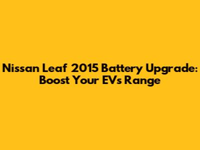 Nissan Leaf 2015: Battery Upgrade Options & Guide