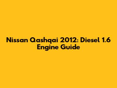 Understanding the Nissan Qashqai 1.6 Diesel Engine (2012 Model)