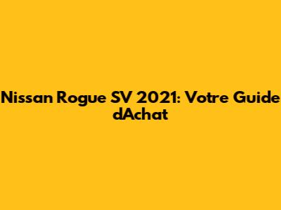Nissan Rogue SV 2021: Votre Guide D'Achat