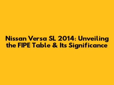 Hey everyone! Today, we're diving deep into the Nissan Versa SL 2014 and, more specifically, the FIPE Table value associated with it. If you're considering buying, selling, or just curious about the worth of this popular sedan, you've come to the right place. We'll break down everything you need to know, from what the FIPE Table is to how it impacts the price of your Versa. Get ready for a comprehensive guide that will empower you with the knowledge to make informed decisions. Let's get started, guys!