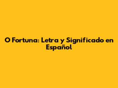 O Fortuna: Letra Y Significado En Español