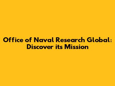 Office Of Naval Research Global: Discover Its Mission