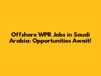 Offshore WPR Jobs In Saudi Arabia: Opportunities Await!