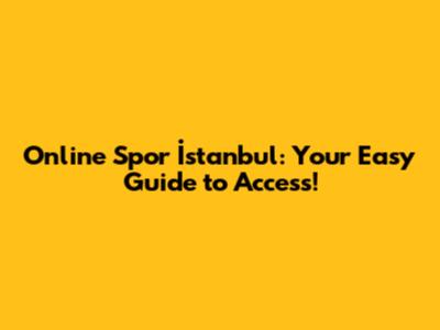 Online Spor İstanbul: Your Easy Guide To Access!