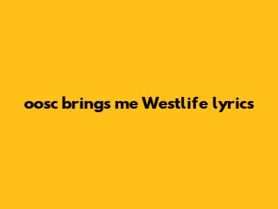 Oosc Brings Me Westlife Lyrics