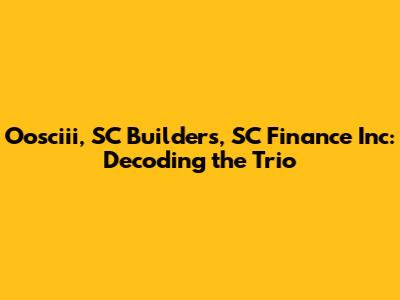 Oosciii, SC Builders, SC Finance Inc: Decoding The Trio