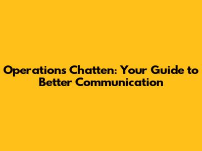 Operations Chatten: Your Guide To Better Communication