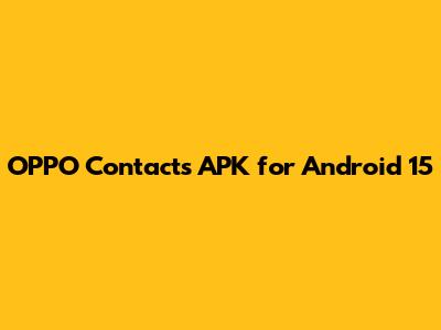 Hey guys, let's dive into the nitty-gritty of the OPPO Contacts APK for Android 15. If you're rocking an OPPO device or just love tinkering with your Android experience, you might be wondering about the latest version of the Contacts app and how to get it, especially if you're on or looking forward to Android 15. This article is all about understanding what the OPPO Contacts APK is, why it's important, and how you can potentially manage it on your device. We'll break down the technical aspects in a way that's easy to digest, even if you're not a coding wizard. So, buckle up, and let's get your contacts looking sharp and functioning smoothly!