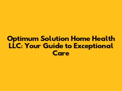 Optimum Solution Home Health LLC: Your Guide To Exceptional Care