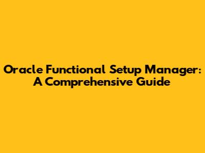 Oracle Functional Setup Manager: A Comprehensive Guide