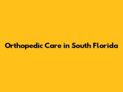 Orthopedic Care In South Florida