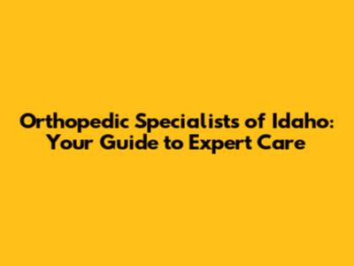 Orthopedic Specialists Of Idaho: Your Guide To Expert Care