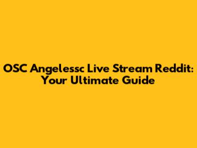 OSC Angelessc Live Streams: Your Guide To Reddit And Beyond