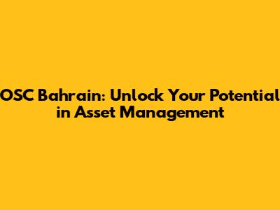 OSC Bahrain: Asset Management Job Opportunities