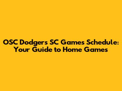 OSC Dodgers SC Games Schedule: Your Guide To Home Games