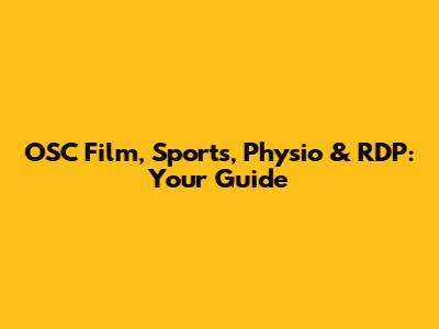 OSC Film, Sports, Physio & RDP: Your Guide