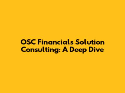 Hey guys! Ready to dive into the world of OSC Financials Solution Consulting? It's a fascinating area, and whether you're a seasoned pro or just starting out, there's always something new to learn. This article is your go-to guide, breaking down everything you need to know about OSC Financials and how solution consulting fits in. We'll explore what it is, why it matters, and how you can make a splash in this exciting field. So, grab a coffee, settle in, and let's get started!