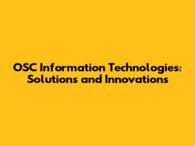 OSC Information Technologies: Solutions And Innovations