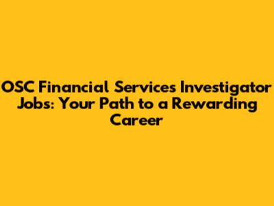 OSC Investigator Jobs: Opportunities In Financial Services