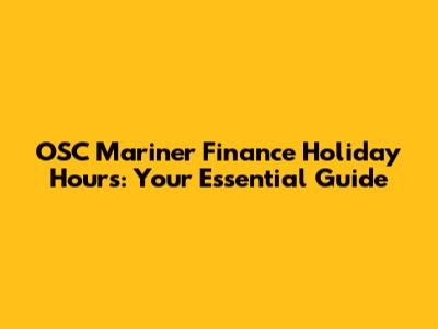 OSC Mariner Finance Holiday Hours: Your Essential Guide
