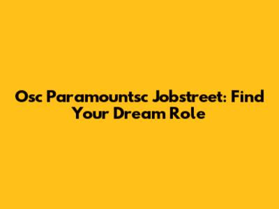 Why Osc Paramountsc on Jobstreet is Your Next Big Move