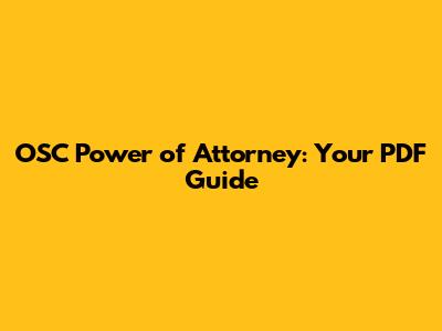 OSC Power Of Attorney: Your PDF Guide