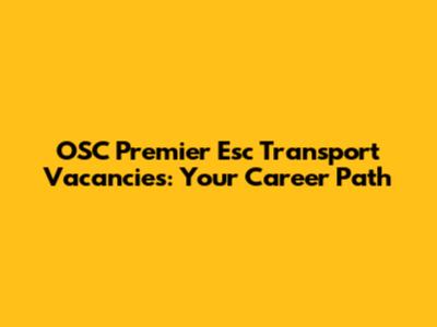 OSC Premier Esc Transport: Your Career Path