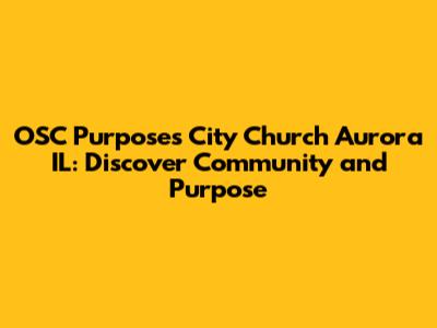 Hey guys! Looking for a church in Aurora, IL, where you can truly connect, grow, and find your purpose? Let's dive into what OSC Purposes City Church is all about. This isn't just another church; it's a vibrant community focused on making a real difference in people's lives. Finding the right spiritual home is a deeply personal journey, and understanding what a church offers is the first step. So, let's explore the mission, values, and activities that make OSC Purposes City Church a unique place of worship and community engagement.