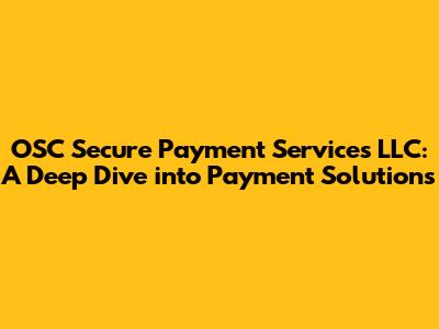 OSC Secure Payment Services LLC: Payment Solutions Explained