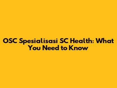 OSC Spesialisasi SC Health: What You Need To Know