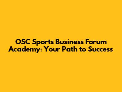 OSC Sports Business Forum Academy: Your Path To Success
