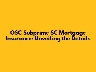 OSC Subprime SC Mortgage Insurance: A Deep Dive