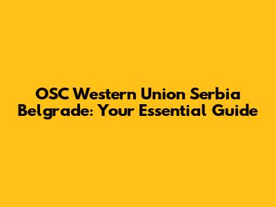 OSC Western Union In Serbia: Your Guide To Belgrade Services
