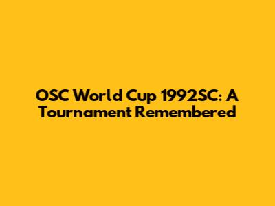 OSC World Cup 1992SC: A Look Back At A Historic Tournament