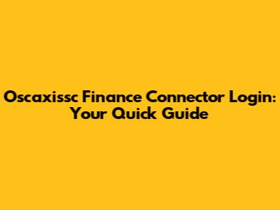 Oscaxissc Finance Connector Login: Your Quick Guide